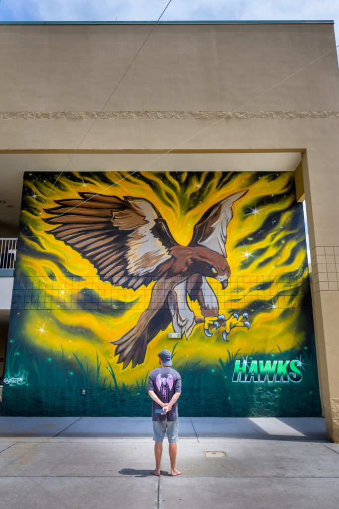 Painted by Jesse, a local muralist and proud Viera High School graduate, this series of murals brings life, identity, and energy to the heart of campus. Spanning gym interiors, exterior walls, and key student spaces, these works celebrate school pride and student legacy through bold color, dynamic motion, and hawk symbolism. 🎨 Mural 1: Gym Wall […]