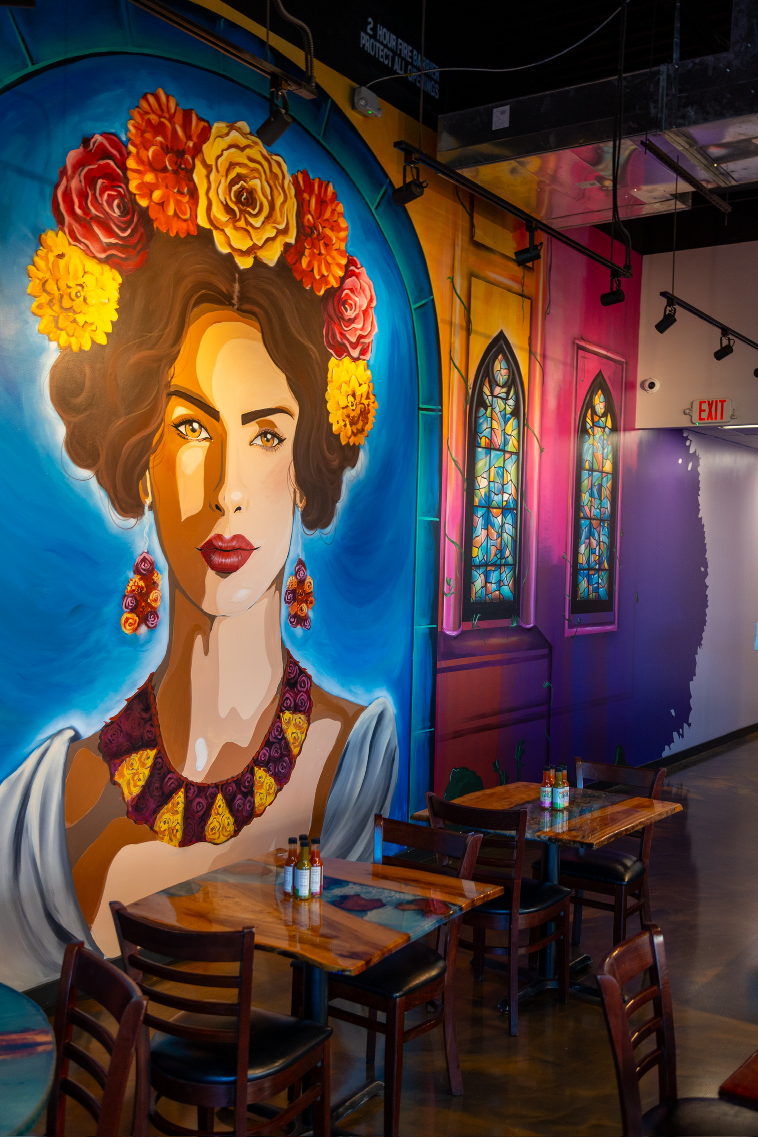 From hand-painted walls featuring bright patterns and desert landscapes to lively characters that celebrate Mexican tradition, the murals enhance the restaurant’s branding while providing guests with a truly immersive dining experience.