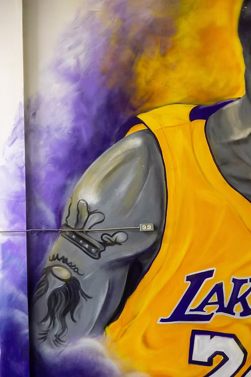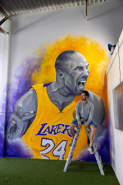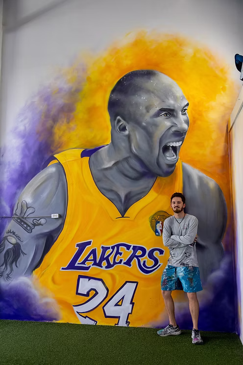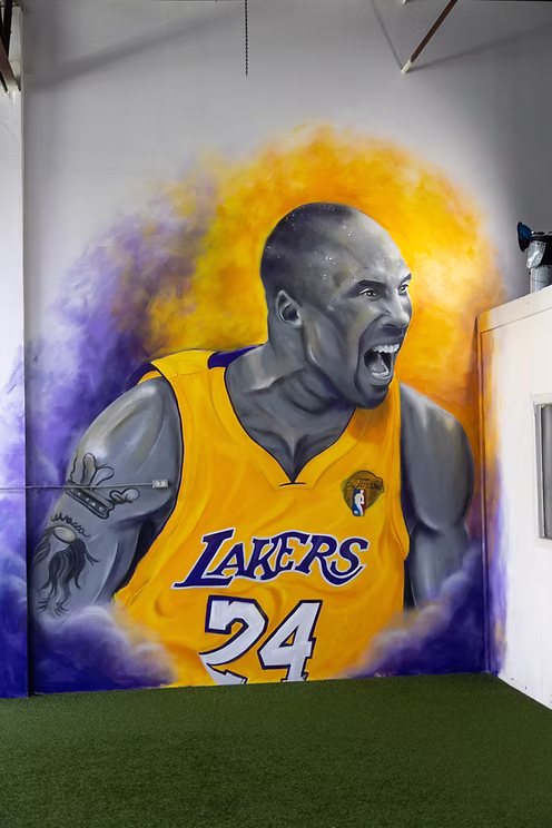 This electrifying mural of basketball legend Kobe Bryant was painted inside Top Notch Training, a performance facility in Palm Bay, Florida.