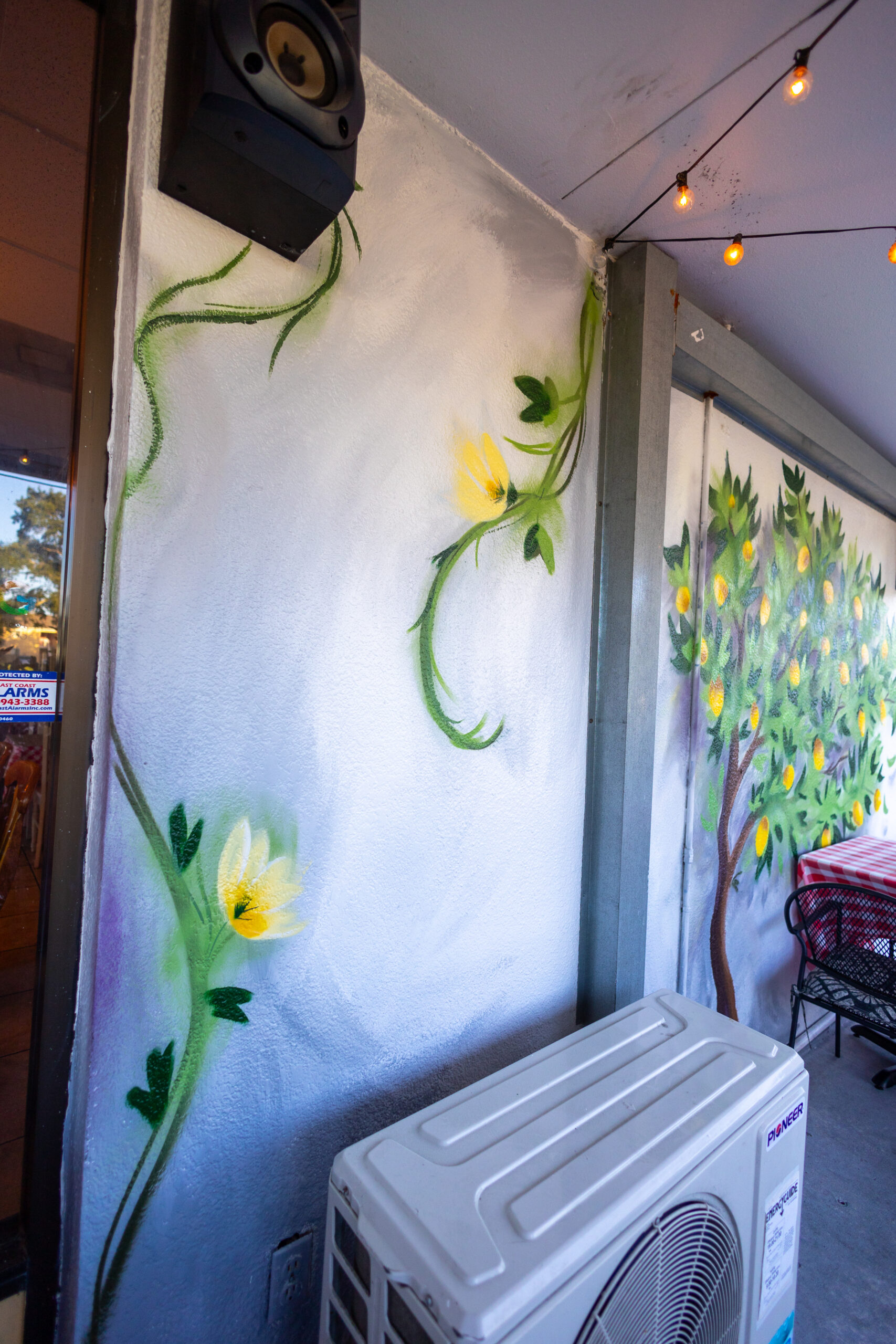 - Colorful lemon trees and vines, painted across the walls to echo the charm of the Italian countryside.