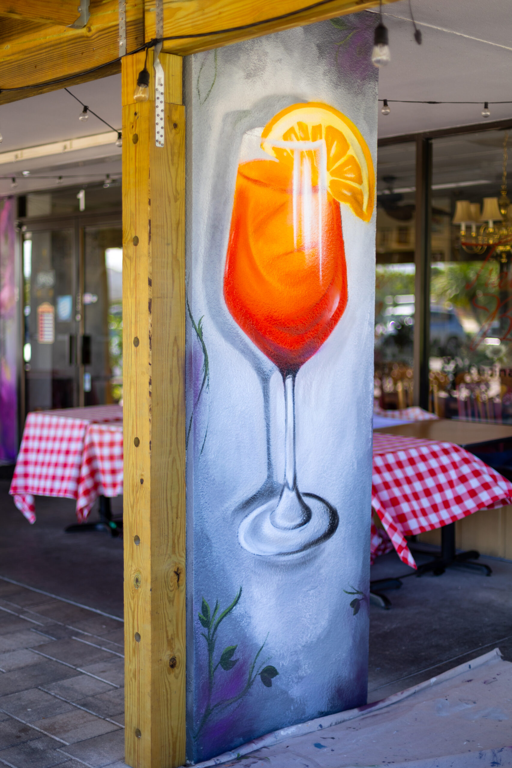 If you’re looking for a restaurant mural artist in Palm Bay or the Space Coast, Jesse’s work at Trattoria Bella is a perfect example of how art and dining can blend seamlessly.