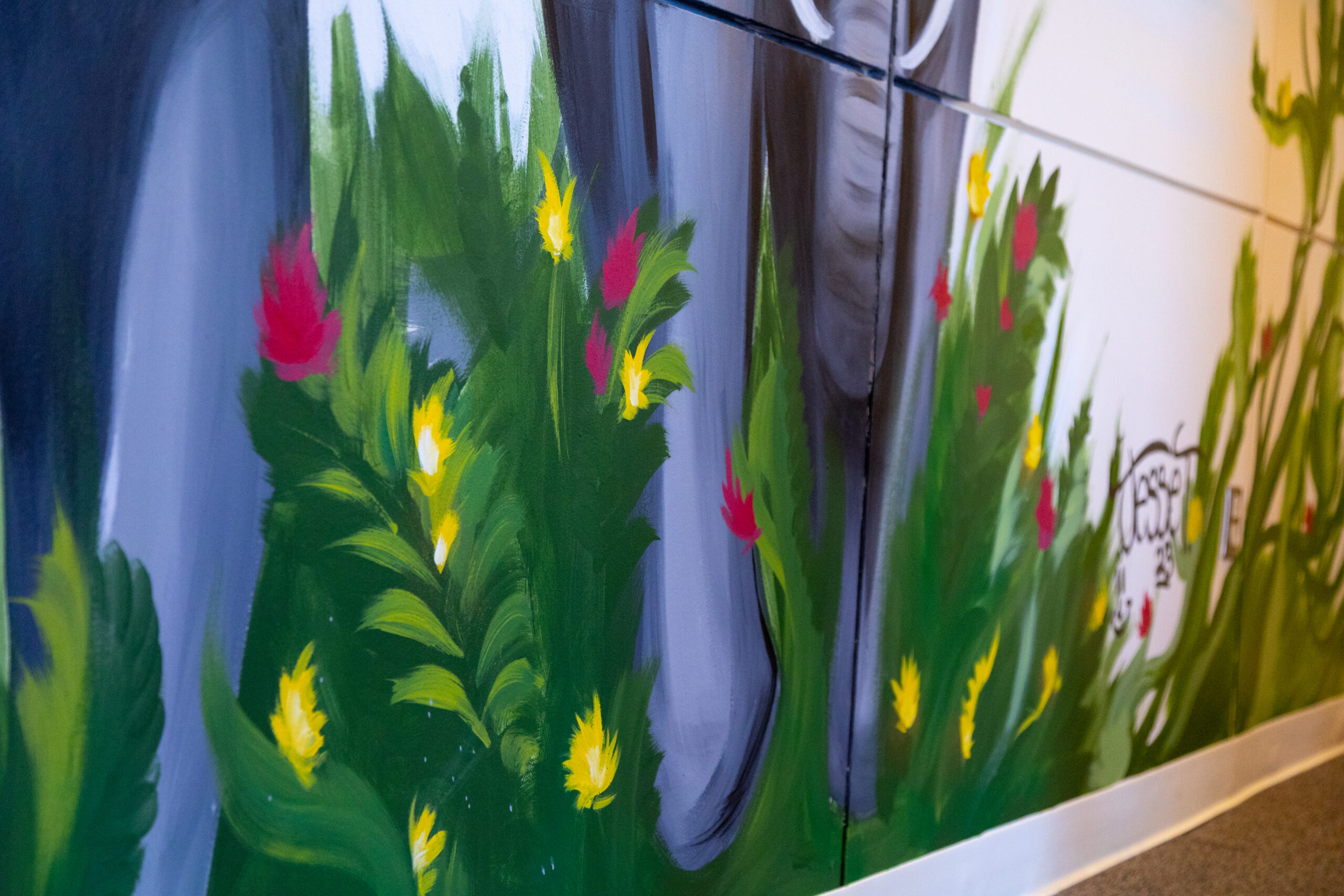 These murals transform the courthouse from a place often associated with stress into one that feels approachable, calming, and even inspiring. By incorporating natural elements and friendly animal figures, the project reflects the community’s commitment to making public spaces more inclusive and supportive for all ages.